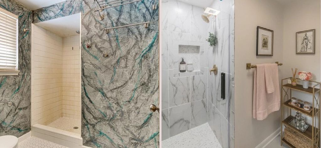 Primary bathroom overhaul- By removing the header in the shower & adding an over head light along with all new tile & fixtures & glass door really brought this room to the next level.